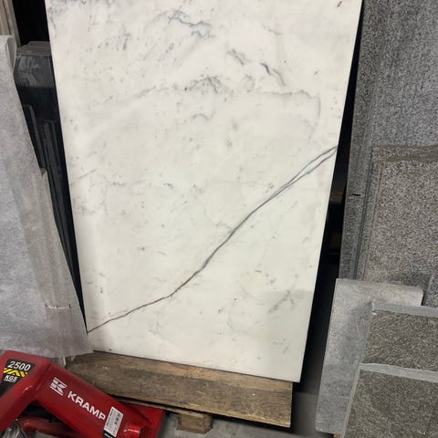 Marmor bordplade i hvid med grå årer. Pladen har poleret overflade og afrundet forkant. Velegnet som bordplade eller pladeemne til fx køkken, bad eller andre indretningsprojekter, hvor der ønskes en lys stenoverflade med marmormønster.