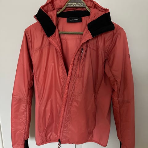 Peak Performance trøje til kvinder i str. M. I blå og fremstillet i polyester. Den har hætte med Peak Performance-logo langs kanten, gennemgående lynlås foran og to lynlåslommer i siderne. Indersiden fremstår blød og fleeceagtig. Velegnet som jakke om. Brugt i 14 dage på en sejlads. Vaskemærket er klippet af.