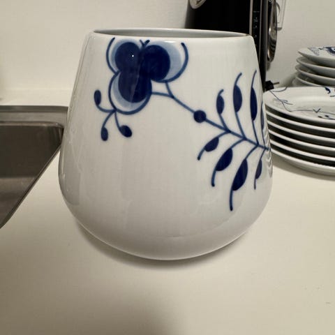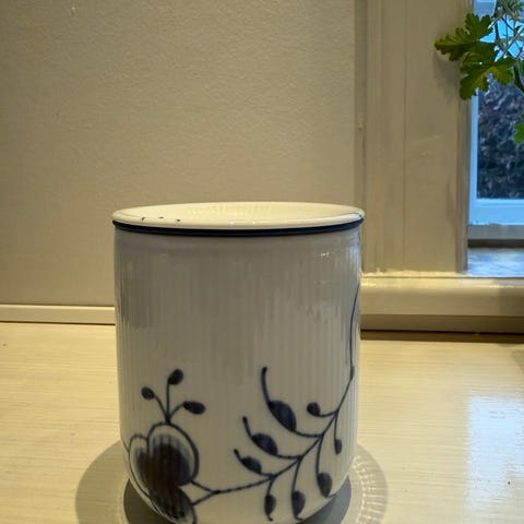 Royal Copenhagen riflet krukke med låg hvid/blå porcelæn