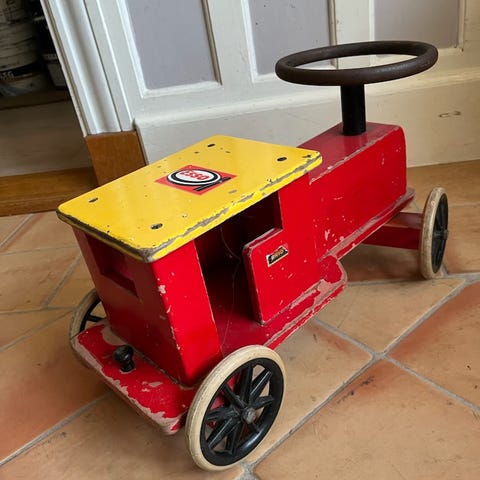 God stand alle sammen. Den røde og brio gåvogn 50kr pr stk. Den store koster 100kr. Navnet kan pilles af.