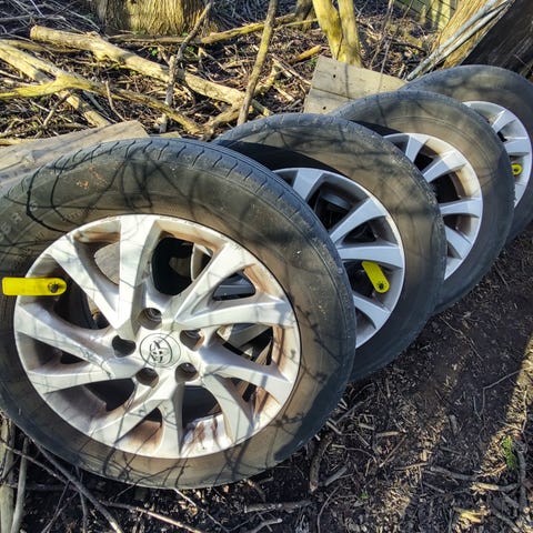 4stk stalfælge med helårsdæk event admonum kort 15 000km dot 4423 afbalanceret og ikke fejl + 4 originale hjulkapsler Toyota som nye passer til Avensis t 27 auris verso 5x114,3 et 39