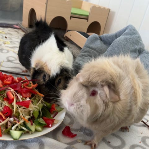 Vi skal desværre snart sige farvel til Olivers burven. Derfor søger vi i god tid et nyt hjem til skønne Oliver på knap 2 år. (Født 5.maj 2023) Oliver har gået fint med 4 marsvin, men går nu kun med en. Han har været super god til at tage imod nye marsvine unger. Han er ikke så håndtam, men kommer gerne og tager imod mad fra hånden.