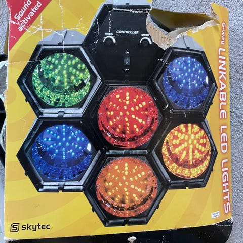 Disco Set 3-in-1 lyseffekter til fest. Sættet indeholder tre forskellige lysenheder: en roterende kugle med flerfarvede lys, en blå blinkende lyseffekt og en spejlkugle med lys. Velegnet som dekoration og lyseffekt til fester og andre højtider. Sættet kan bruges indendørs, f.eks. i stue, festlokale eller børneværelse, hvor der ønskes enkel diskobelysning. Det kan sendes for 43kr med gls.