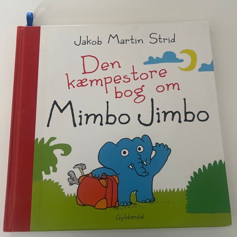 Jakob Martin Strid Mimbo Jimbo og den lange vinter billedbog. Dansk børnebog udgivet på Gyldendal med farverige illustrationer og hårdt omslag. Bogen følger elefanten Mimbo Jimbo og hans venner i en historie om den lange vinter. Velegnet som højtlæsningsbog for mindre børn.