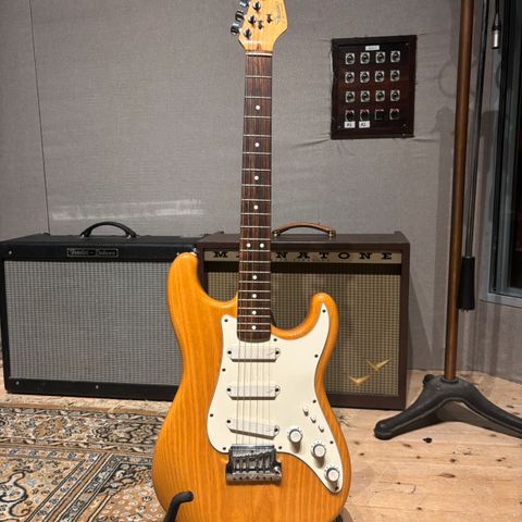 Jeg købte den i 2023 af tidligere ejer og har spillet meget på den siden. Det er en virkelig velspillende Strat med præcis den klassiske og sprøde Strat-lyd man forventer. Den fungerer til stort set alle genrer.