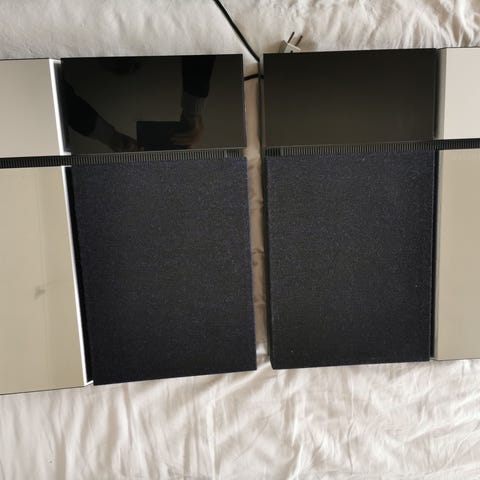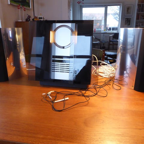 Bang & Olufsen system Beosound 2300, 2 aktive Beolab 4000 højtalere og Beolink fjernbetjening.