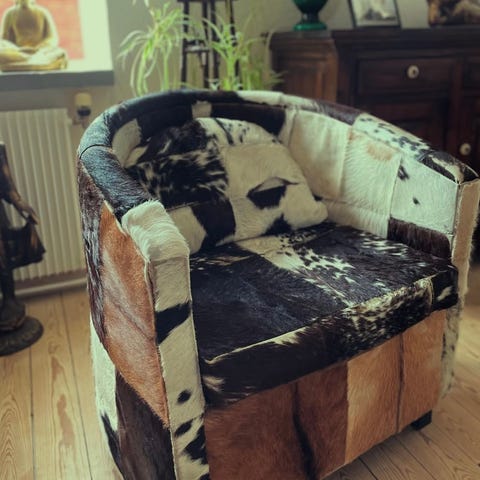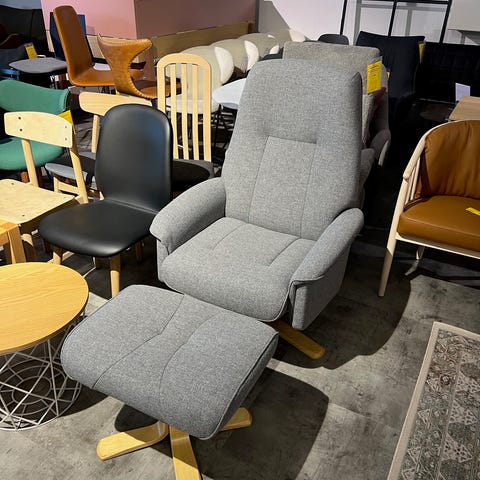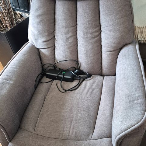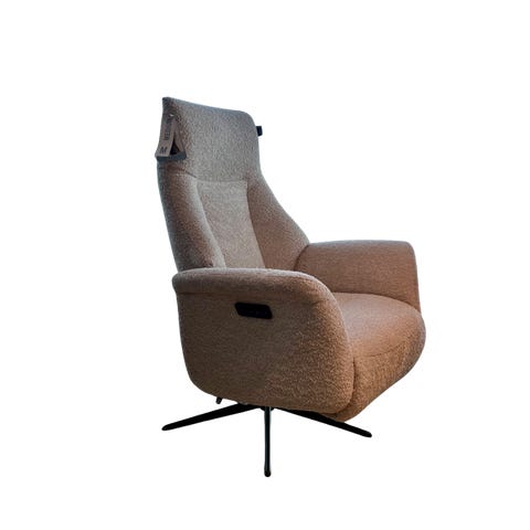 Behagelig og funktionel lænestol. Stolen er betrukket med en lækker og slidstærk okselæder. Stolen er med en manuelt indbygget fodskammel og står på et sort metal stel.