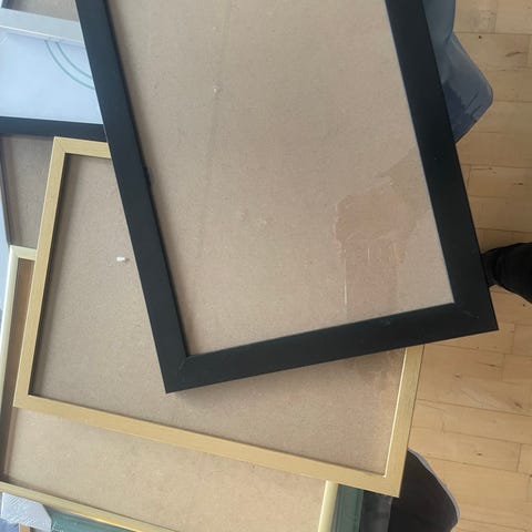 IKEA billedrammer sæt i sort. Sættet består af flere rektangulære rammer i forskellige størrelser, velegnet til fotos og plakater. Rammerne har en enkel, sort træ kant og hvid passepartout. Egnet til ophængning som gallerivæg i stue, gang eller andre rum i hjemmet. Det er glas og trærammer