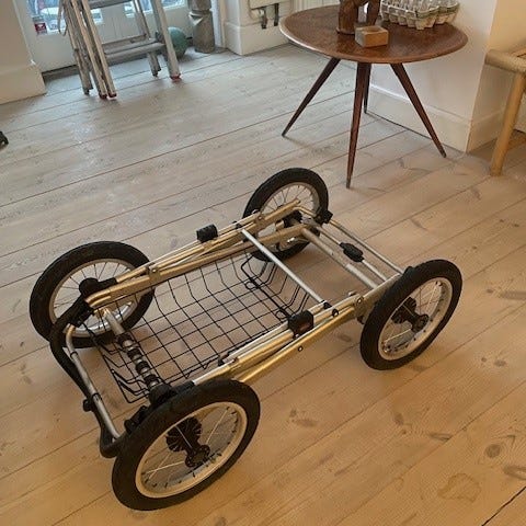 Brugt og rusten barnevogn velegnet til at stå på altanen. Vi købte den selv brugt for et år siden. Udstyr er relativt nyt, og følger gratis med :D