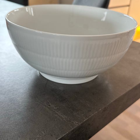 Den Hvid Riflet skål fra Royal Copenhagen er meget alsidig i størrelsen, og kan således bruges både til fredagsslikken, en lille salat, eller du kan stille den fremme på bordet og fyld den med nødder.