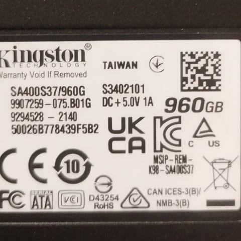 Kingston A400 SSD 2,5" med kapacitet på 240GB. Drevet bruger SATA-interface og er egnet til brug i stationære og bærbare computere, der understøtter 2,5" SATA-diske. SSD-teknologien giver kort adgangstid og lavere støjniveau sammenlignet med mekaniske harddiske. Modellen er SA400S37240G, som fremgår af etiketten og skærmbilledet.