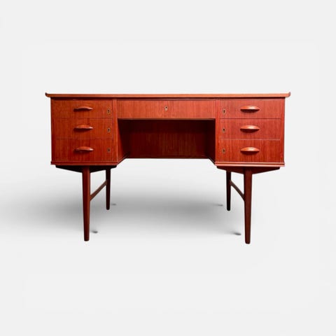 Omann møbelproduktion var kendt for en gennemgående høj kvalitet, og med smukke træsorter, Omann Jun. Skrivebord mmodel 75 må forventes at være et godt investeringsmøbel