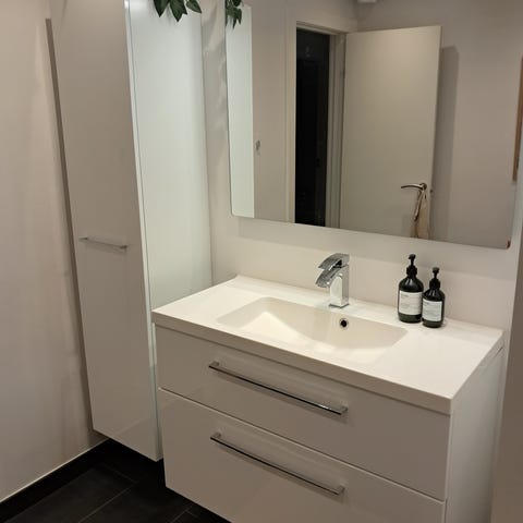 2 stk Hængende badeværelsesvaskeskabe fra Svane køkken Lux design uden vask - kun 2 år gammelt.