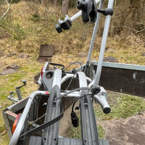 Cykelholder til anhængertræk med integreret lygtebom. Kan vippes