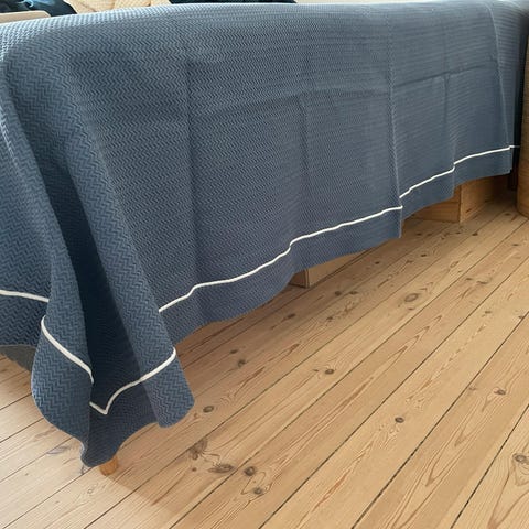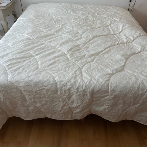Lexington sengetæppe i quiltet design. Farven fremstår som hvid/lys natur. Tæppet har gennemgående kvadratisk quiltning og en påsyet label med tekst. Velegnet som sengetæppe til dobbeltseng eller som ekstra lag på sengen.