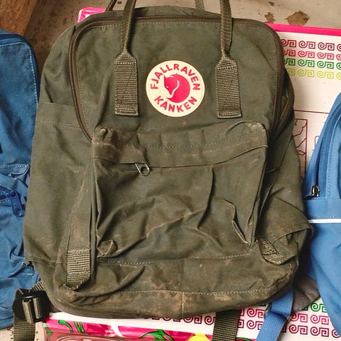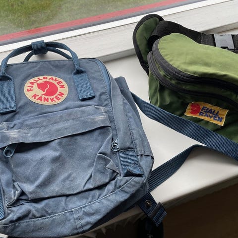 Grøn fjällräven, str small. Har sat nye læderstropper i lynlåsene.