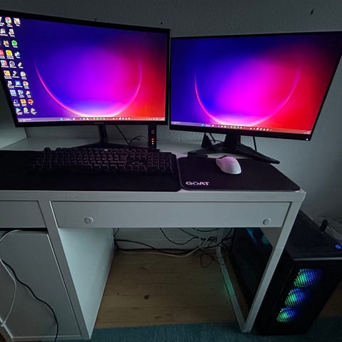 Jeg sælger dette samlede gamer-setup, med lækkert ekstra udstyr. Det er et par år gammelt, men alt fungerer fejlfrit og er velegnet til spil som Minecraft, Valorant og Fortnite.