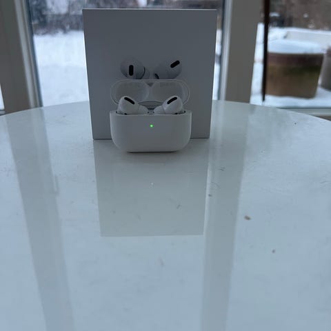 Sælger 2 sæt Apple AirPods Pro gen 1. da min kæreste og jeg bare har dem liggende efter vi begge har købt de nye. De fungerer som de skal, de er begge med Lightning opladning.