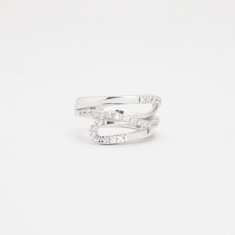 Crossoverring i 18K hvidguld med diamanter (0.03 ct), Str.