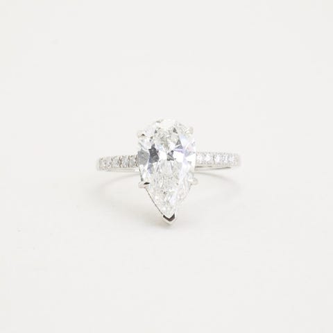 Dråbeformet alliance solitairering i 14K hvidguld, med