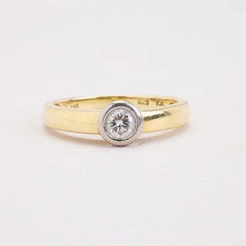 Solitairering med diamant (0.35 ct) i 14K guld og hvidguld,