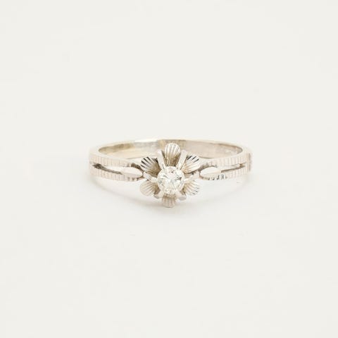 Blomsterring i 18K hvidguld med zirconer, Str. 48-Hvidguld