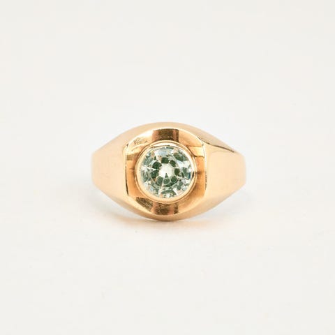 Signetring i 14K guld med lilla sten, str. 55-Guld
