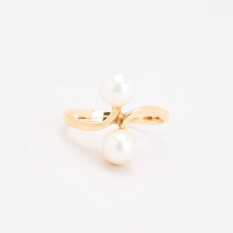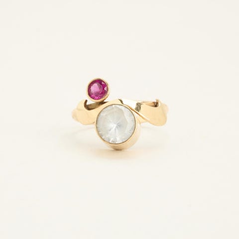 Toi et Moi ring i 14K guld med flerfarvede sten, str.