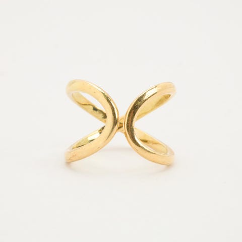 Krydsring i 18K guld med flere safirer og hvide sten, Str.