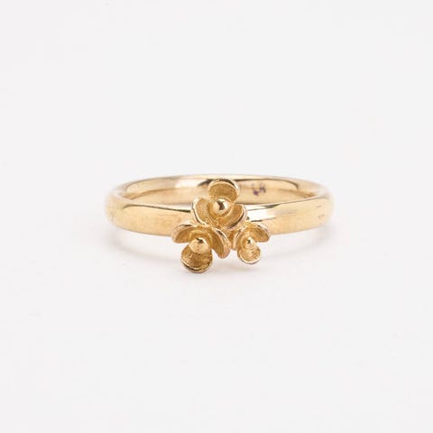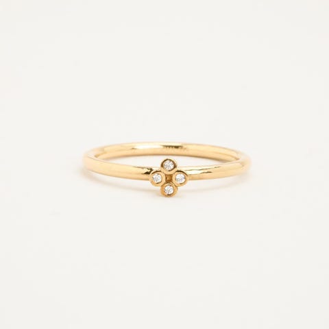 Spinning Blomsterring i 8K guld med hvide zirkoniaer, Str.