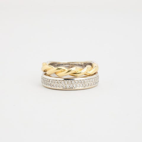 Pavéring i 14K guld med hvide og røde sten, Str. 53-Guld