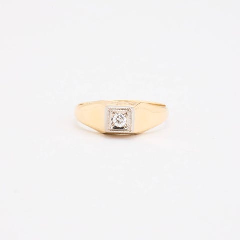 Signetring med diamant (0.03 ct) i 14K guld, str. 64-Guld