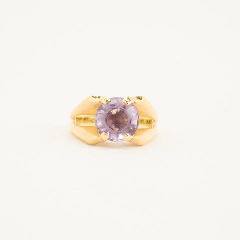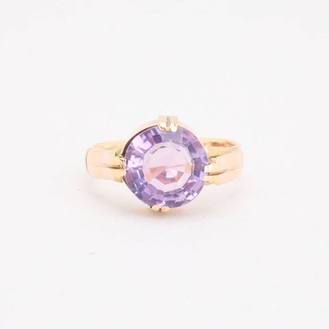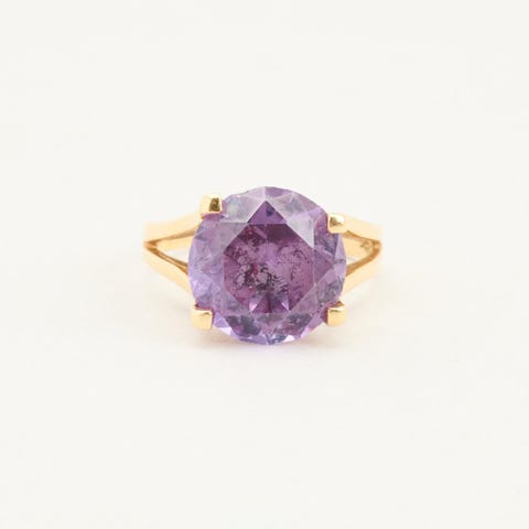 Cocktailring i 14K guld med en lilla sten, Str. 56-Guld
