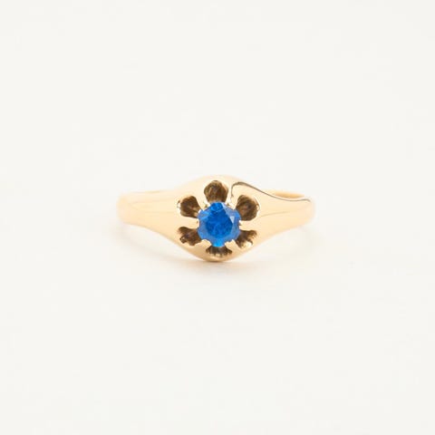 Signetring i 14K guld med blå sten, Str. 65-Guld