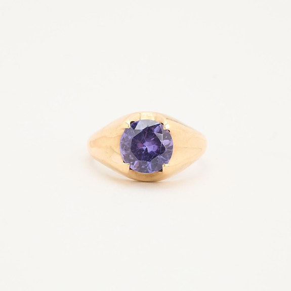 Signetring i 14K guld med en blå sten, Str. 55, 2.4 g-Guld