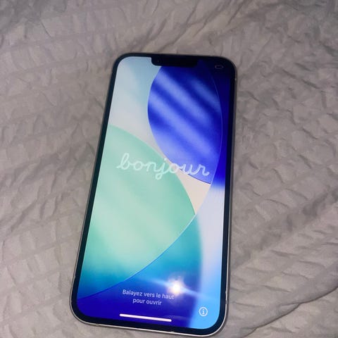 Apple iPhone 14. Enheden leveres med original æske og indsats som vist på billederne. Købt i januar 2024, kvittering haves :)