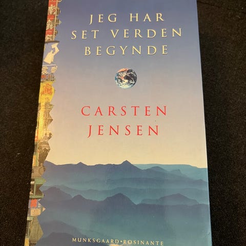 Carsten Jensen "Jeg har set verden begynde" bog. Dansk sproget udgivelse i paperback/softcover-format. Bogen er en rejsebeskrivelse/essay-samling, hvor forfatteren skildrer oplevelser og indtryk fra rejser forskellige steder i verden. Teksten kombinerer personlige iagttagelser med kulturelle og samfundsmæssige beskrivelser. Velegnet til læsere med interesse for rejser, samfundsforhold og moderne dansk litteratur.