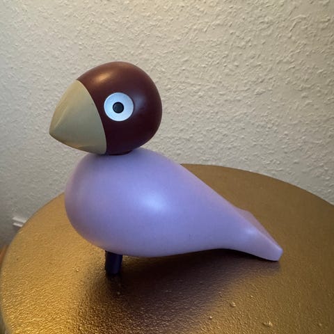 Poppy årsfuglen, fra 2022. Den første årsfugl, der blev lavet. Æsken haves ikke, men fuglen er i ny stand.