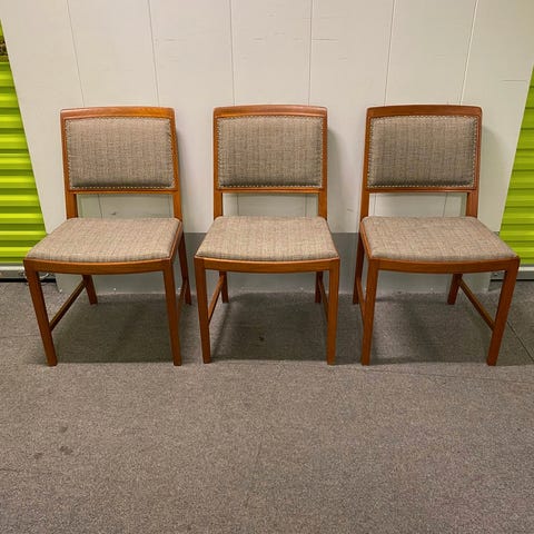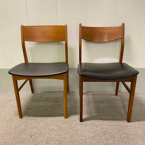 6 lækker retro spisebordsstole i massiv taektræ, betrukket med stof. Fremstår i super stand. Evt kan lev aftales. Pris er pr stol.