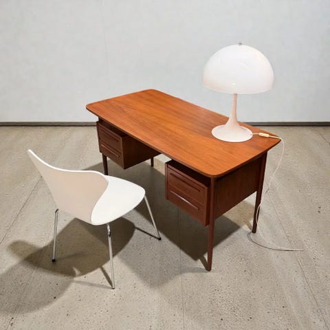 Fritstående dansk skrivebord i teak