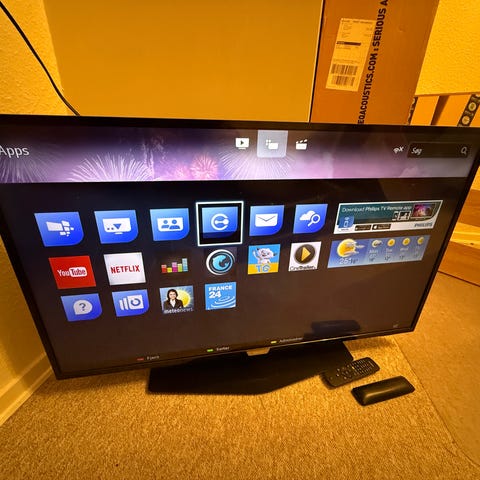 Smart Tv sælges da det ikke længere bliver brugt. Det har været på væg og det vægophæng følger med..