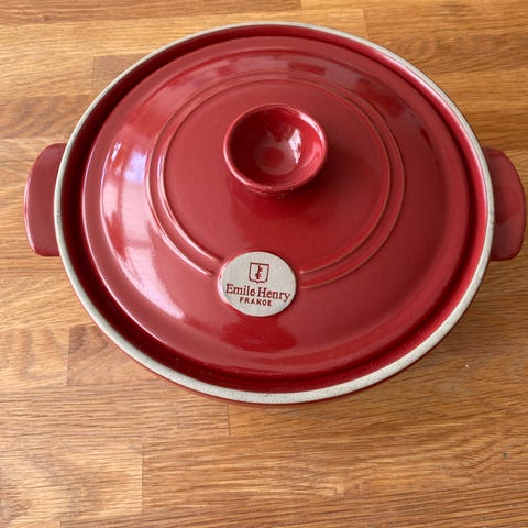 Tajine, diameter 32 cm, kapacitet 3 l, lavet af FLAME® keramik - mærket Emile Henry. Brugt kun en gang.