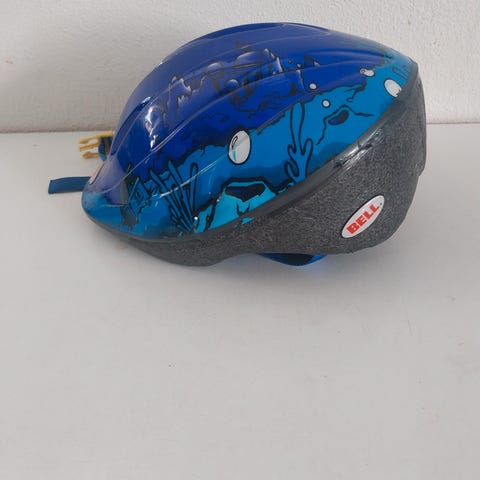 Cykelhjelm, Bell, Arella, 50-57cm, Juniormodel. Med aftagelig skygge. Har ikke været “styrtet”. (Det ene nakkelys virker. Der kan evt skiftes batterier, så de begge virker) Kan sendes med GLS