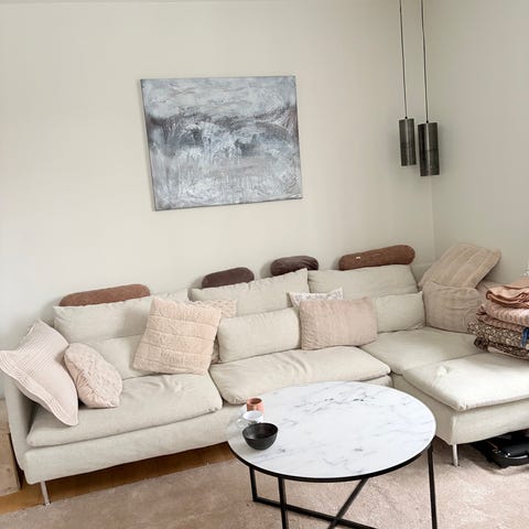 Betrækket er taget af og sofaen står i mit lagerrum grundet flytning