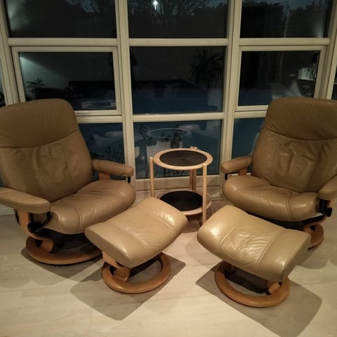 Lænestol, trinløs glid og automatisk regulerbar nakke-og lændestøtte, Classic stel, siddehøjde 40 cm.