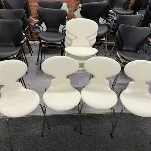 Rigtigt flotte Arne Jacobsen Myren stole originale fra Fritz Hansen, helt nypolstret i hvidt semianilin skind.