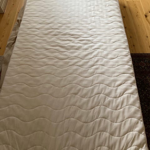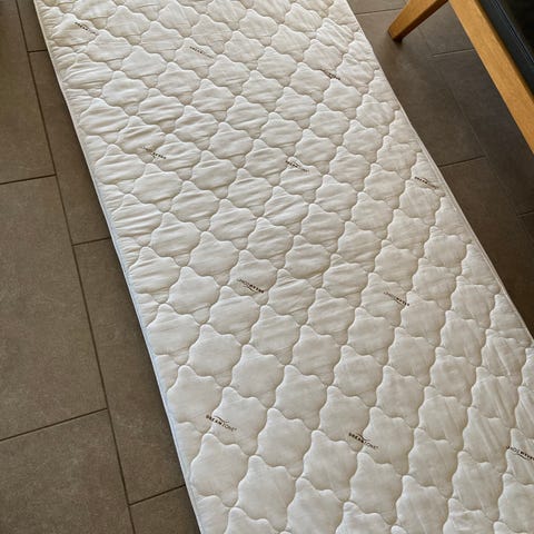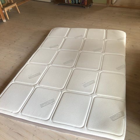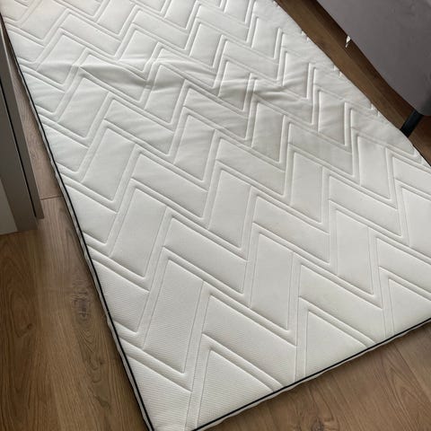 Jysk skummadras i hvid. Skumadrassen er beregnet til placering oven på en madras eller seng for at give et ekstra komfortlag.