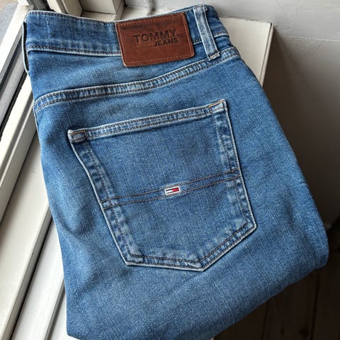 Tommy Hilfiger Denton, stretch straight fit, W32 L32, herrejeans, lys denim, Tommy jeans, klassiske straight jeans, pre-loved denim, hverdagsjeans.