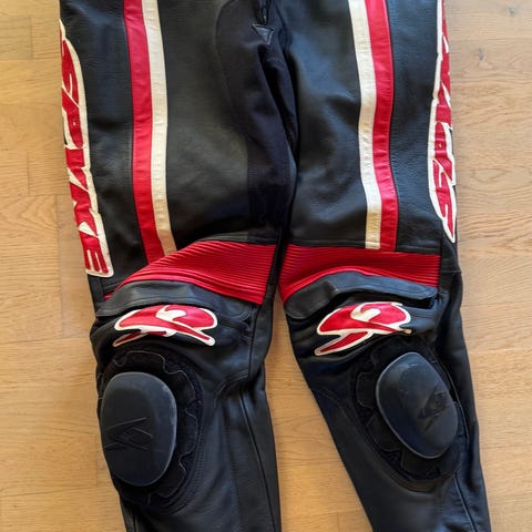 Jakke str. 42 og bukser med seler str. 46.