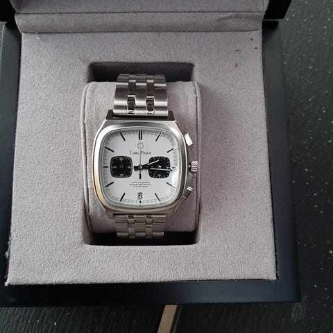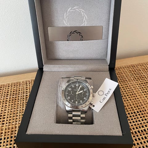 Er udstyret med et Japansk urværk som går utroligt præcist. Sidder utroligt godt på armen og er sjældent brugt. Står derfor snorlige bortset fra et par enkelte bitte små mærker hist og pist (se billeder).